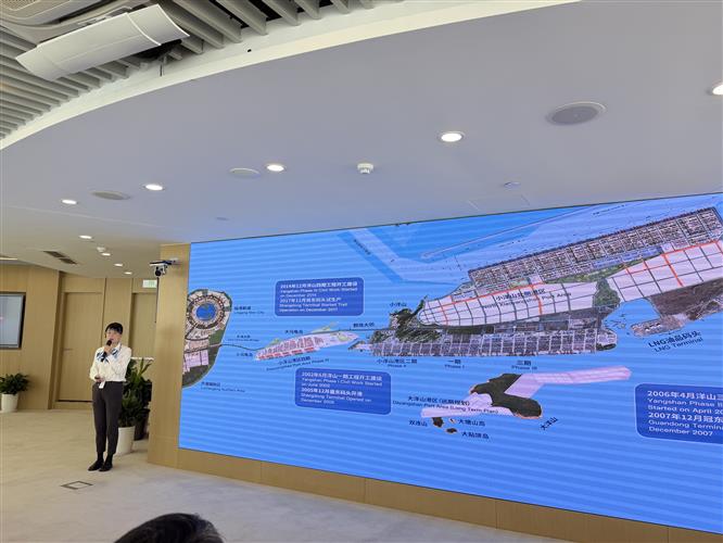 洋山四期于2017年12月10日开港试生产,是目前全球最大的单体全自动化码头,也是全球综合自动化程度最高的码头之一。在工作人员的详细讲解了无人码头的建造历程,青年科技工作者们观看了洋山四期的宣传片,登上码头观景平台,俯视整个生产作业区,生产作业行云流水,高效运转却不见传统码头的喧嚣与人潮。这幅充满未来感的壮观场景,深深震撼了到访的每一位青年科技工作者。